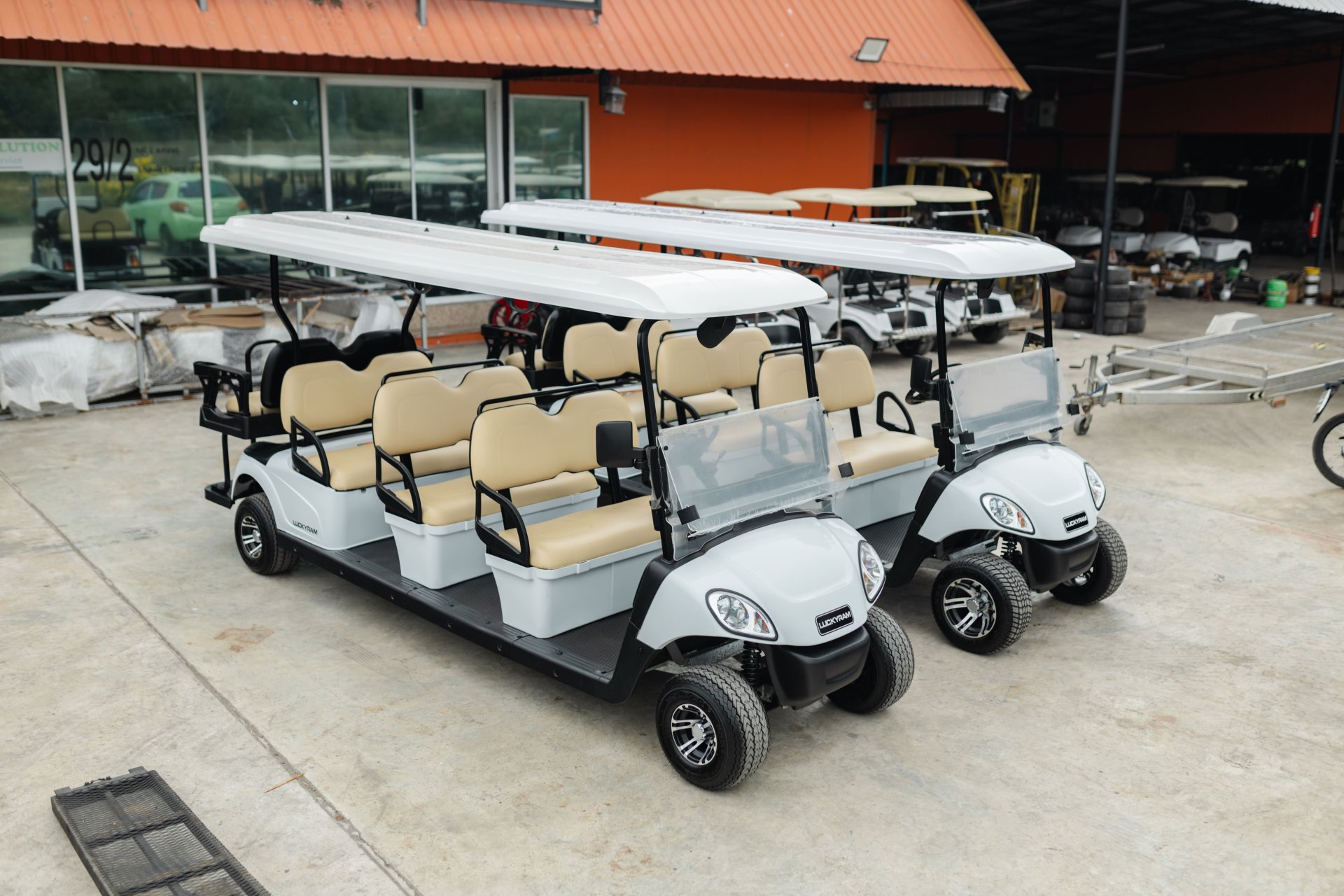 A.I. Solution ให้บริการเช่ารถกอล์ฟ รุ่น 8 ที่นั่ง จำนวน 2 คัน สำหรับลูกค้าที่ต้องการใช้งานระยะสั้นในกิจกรรมพิเศษ เช่น งานอีเวนต์ งานสัมมนา หรือการรับส่งผู้โดยสารภายในพื้นที่